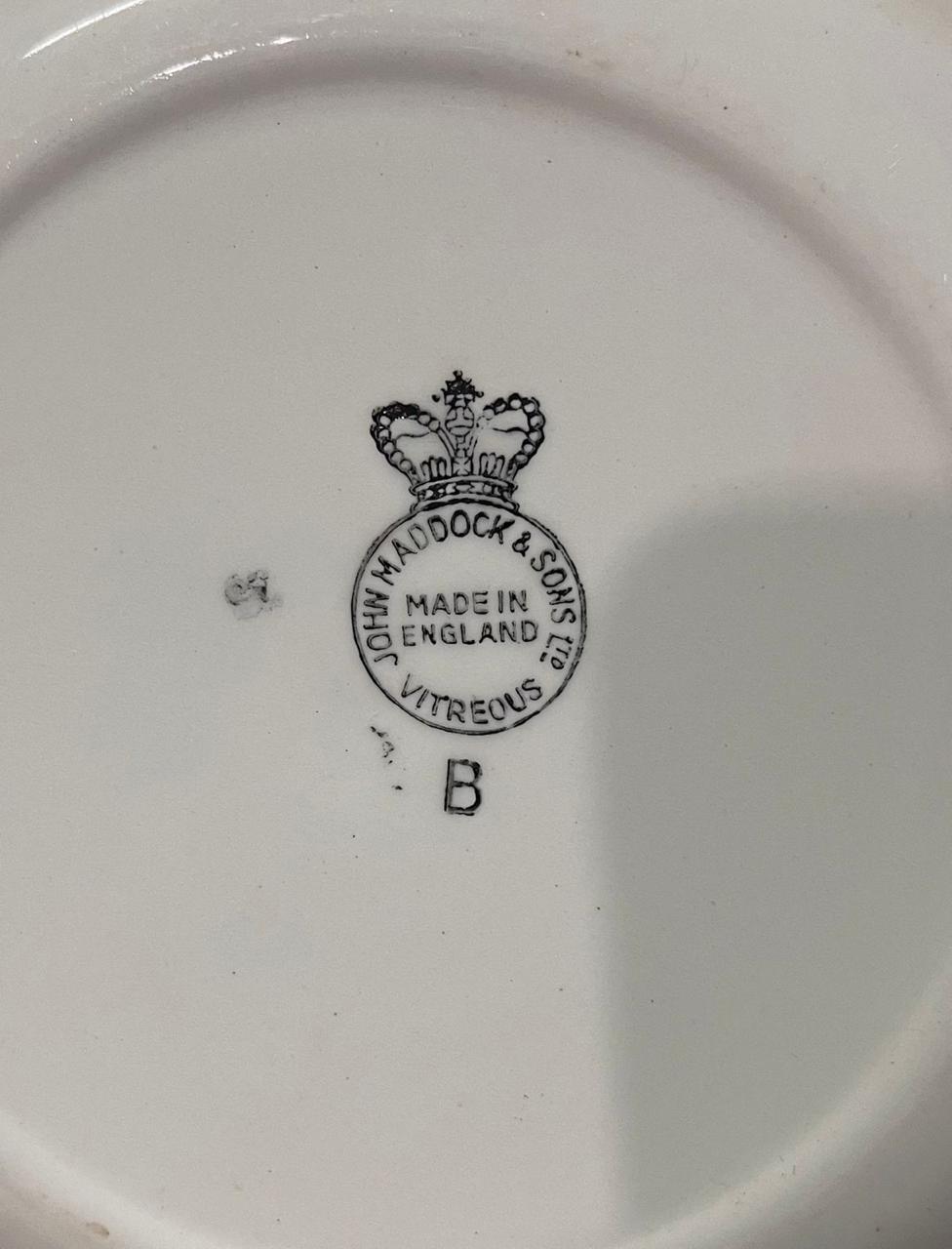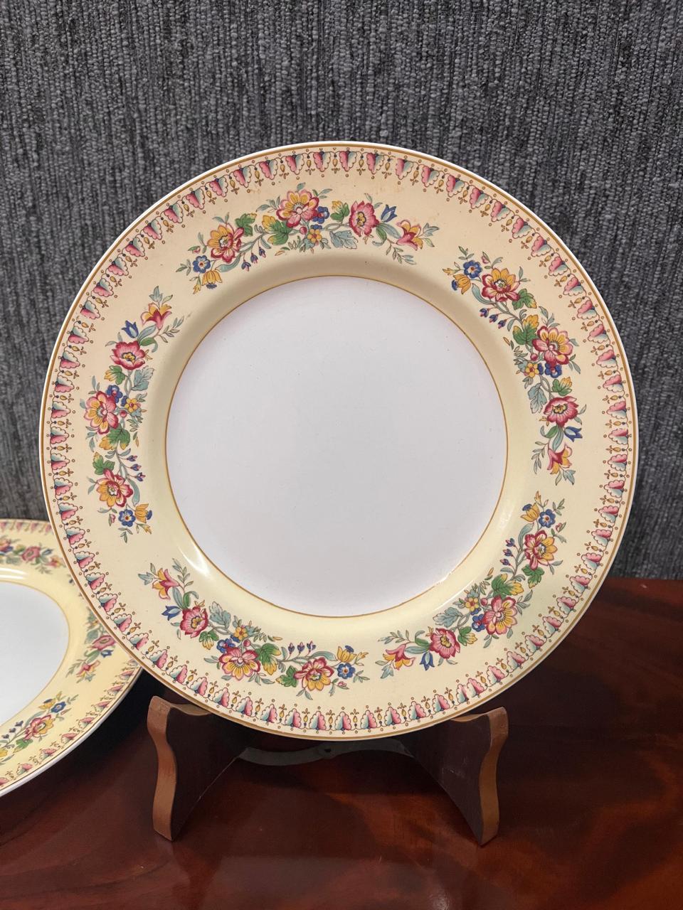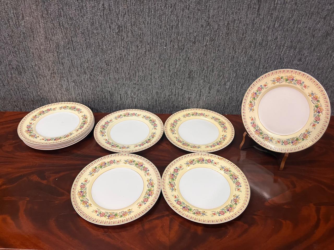 Hermoso juego de 10 platos de postre en porcelana inglesa sellados con motivo floral, de excelente calidad