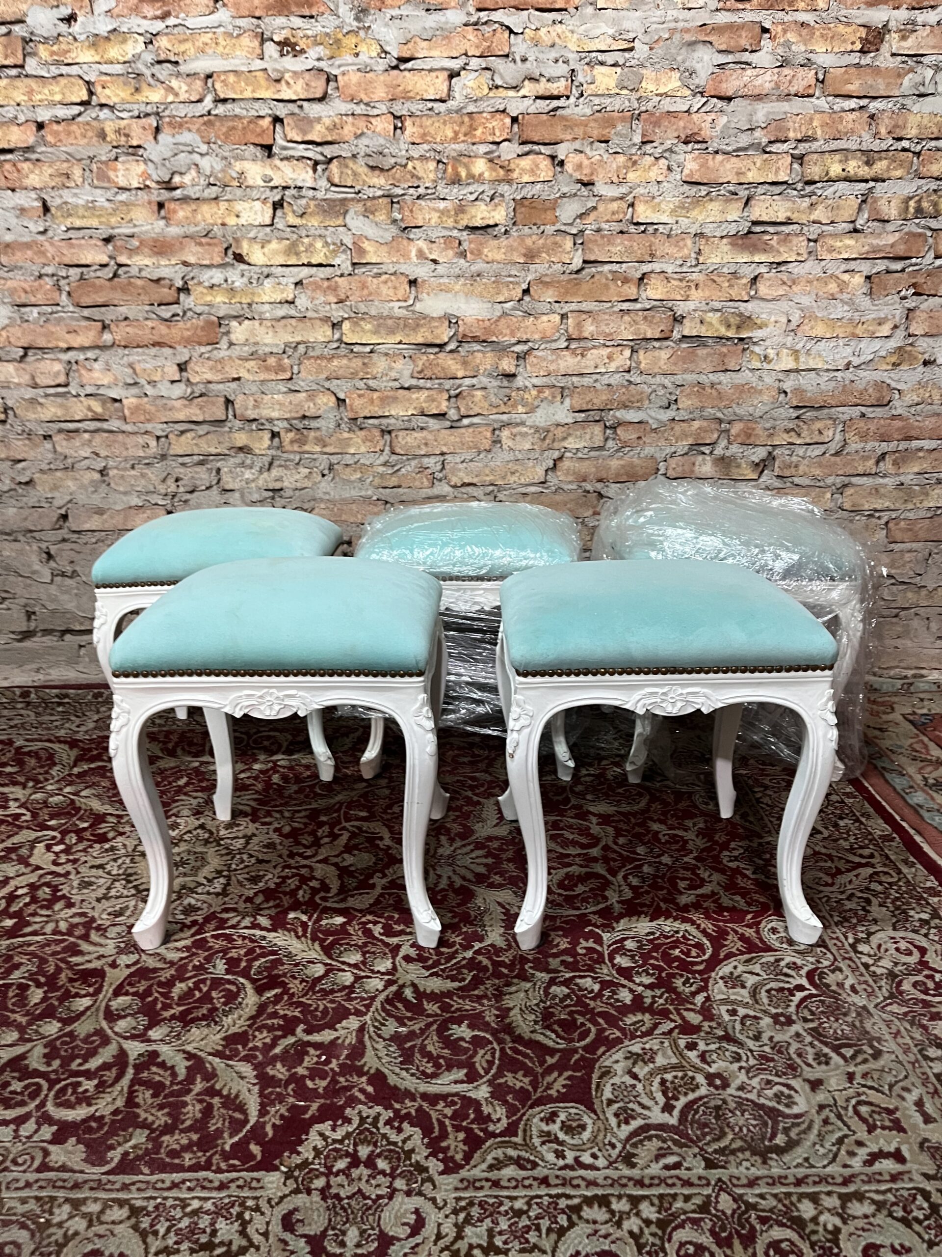 Única banqueta francesa patinada de blanco, lista para usar y dar elefancia a un ambiente