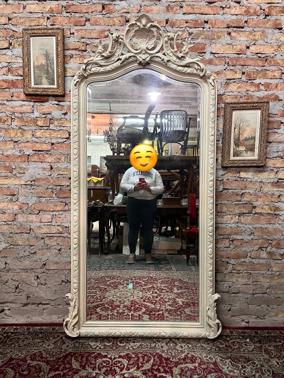 Increíble espejo francés bicelado muy antiguo, en buen estado de primera calidad con tallas impresionantes patinado de blanco, listo para vestir cualquier lugar !!