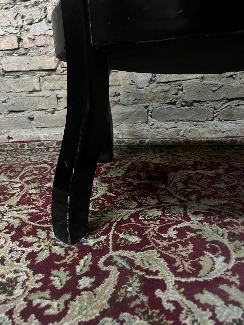 Espectacular silla chippendale matera/sala, tapizado sano tiene algunos raspones en el laqueado. no afecta su uso!!