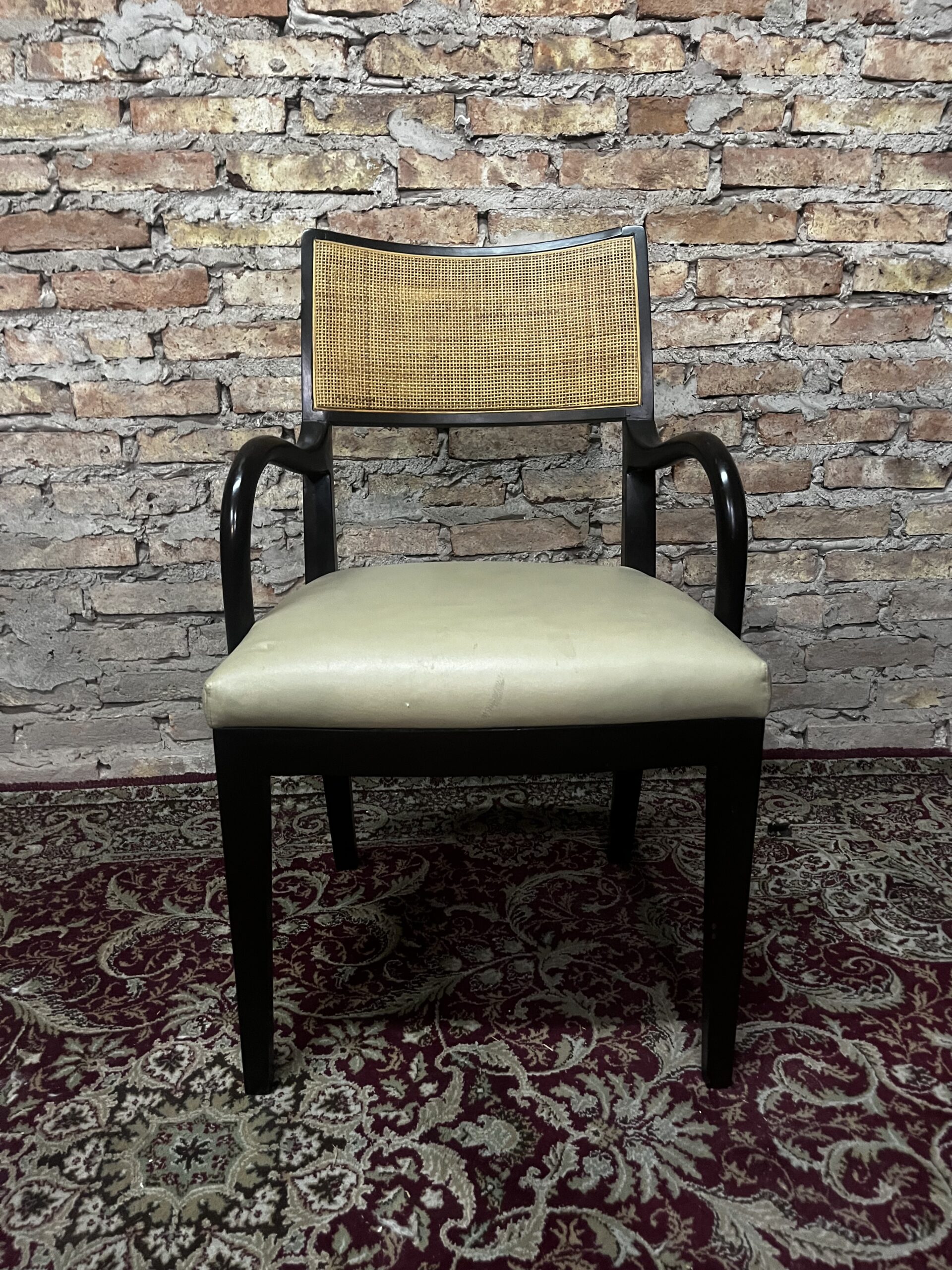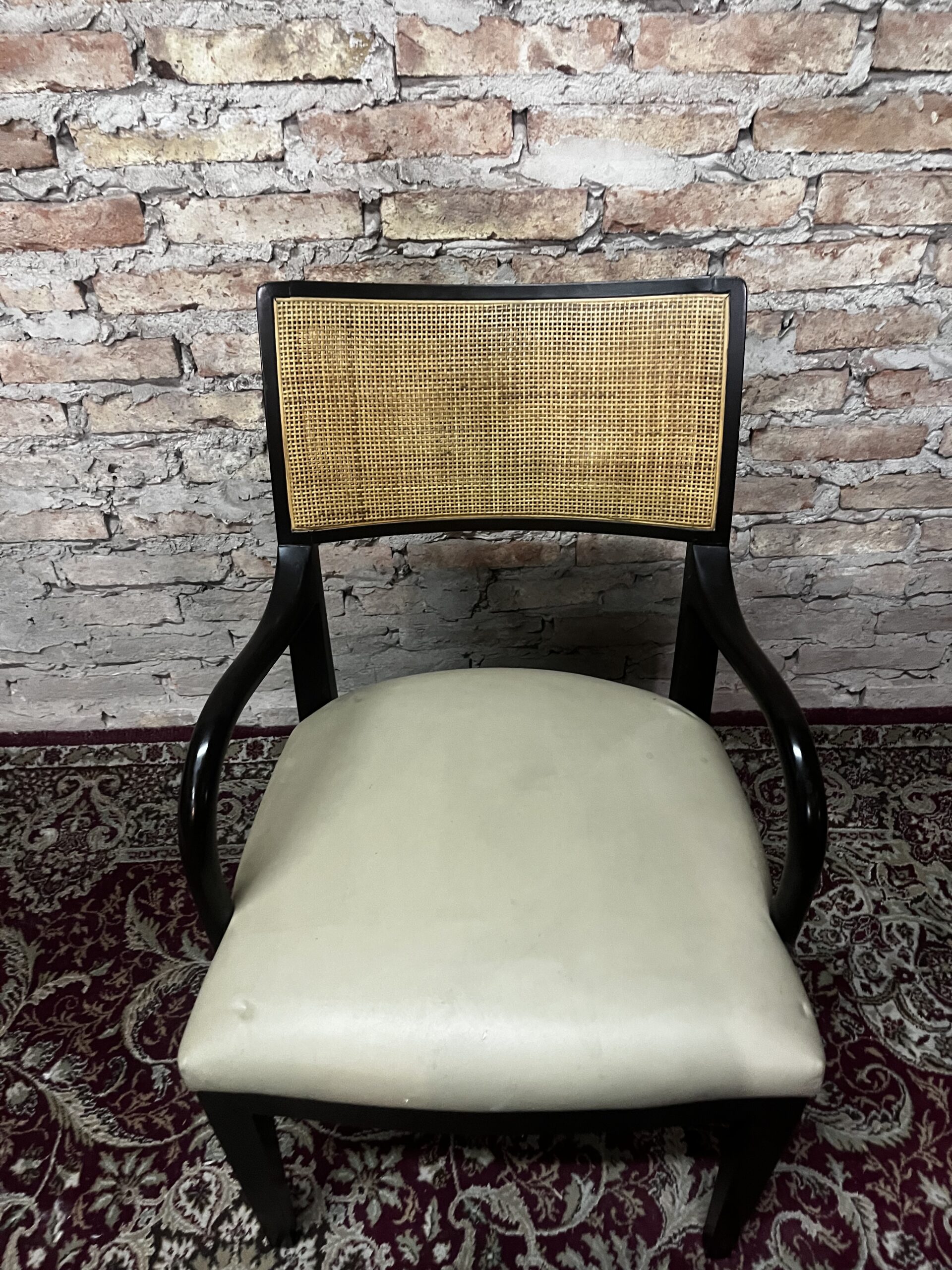 Sillón de escritorio ingles con respaldo de esterilla y asiento tapizado en tono claro, con un diseño sobrio y elegante