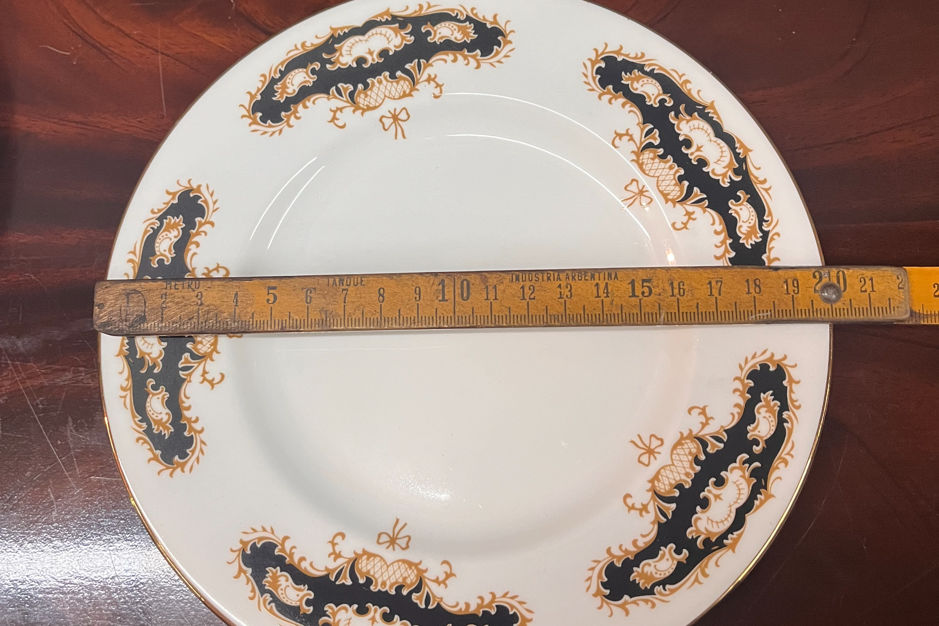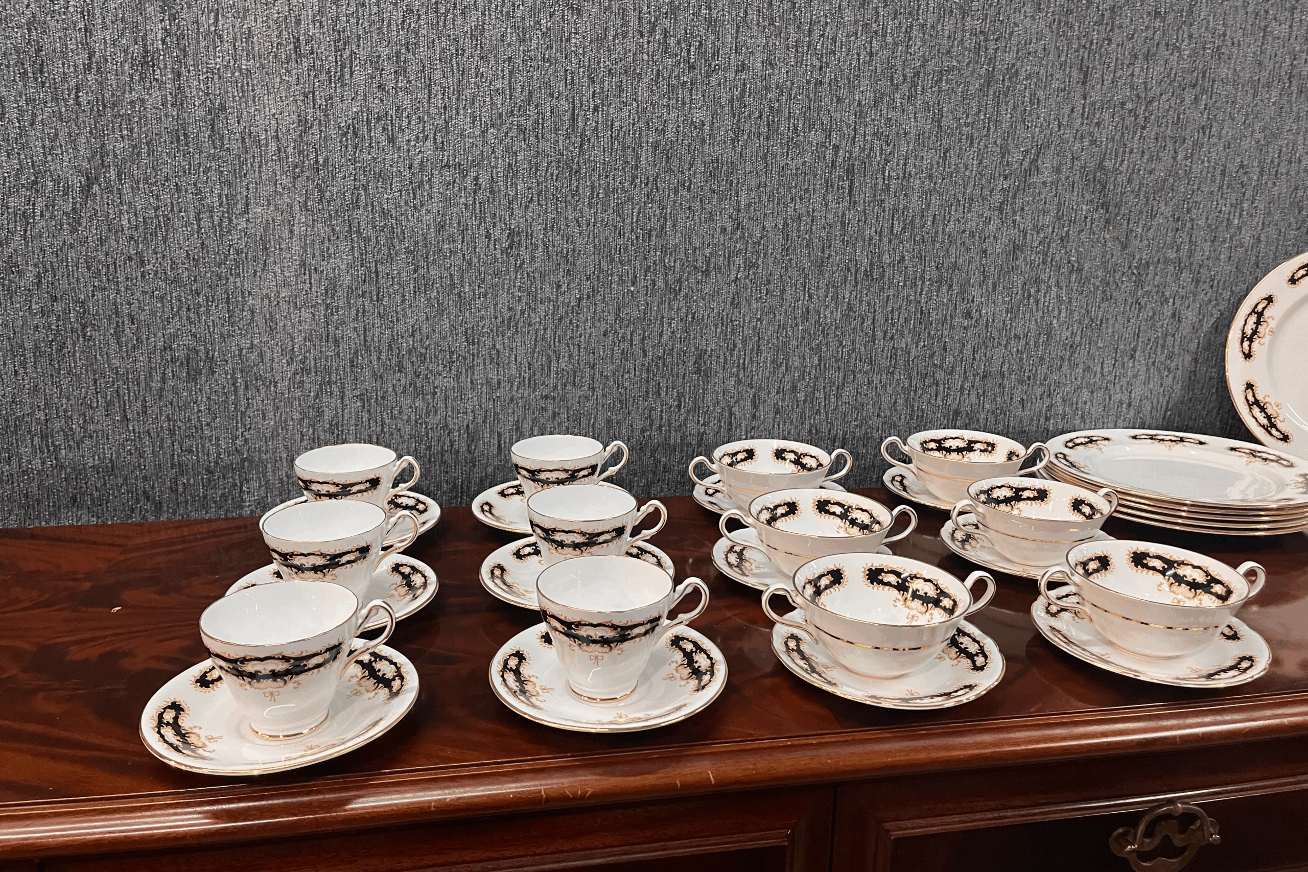 juego de vajilla en porcelana oriental con ribetes en dorado
