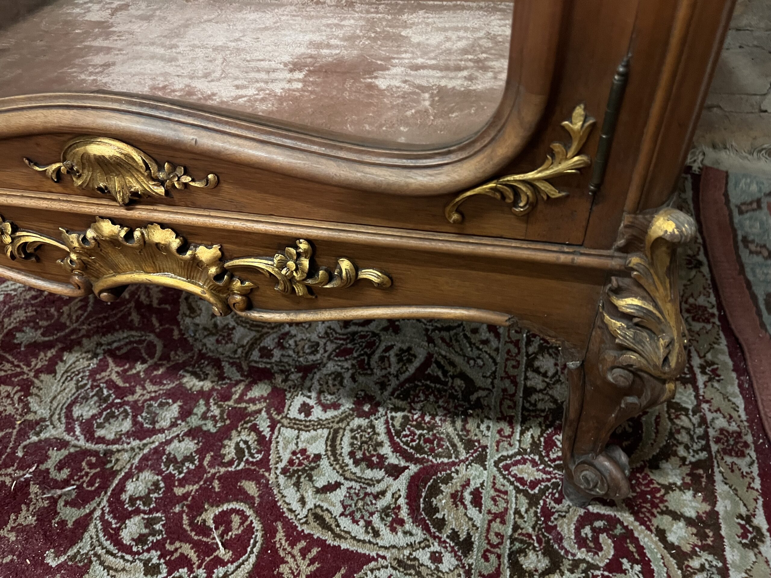 Vitrina francés Luis XV con vidrios biselados y detalles en dorado a la hoja muy antigua